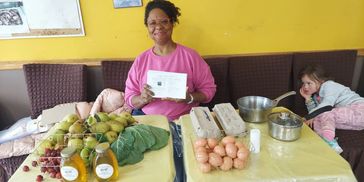 Bonnie, the dreamer, demonstrating how to cook the perfect egg at 2024 Market